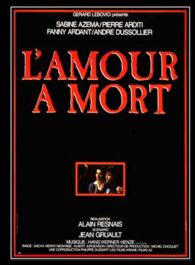 ."L’Amour à mort" est un film français réalisé par Alain Resnais en 1984, d’après un scénario de Jean Gruault. Ce drame psychologique et métaphysique, porté par un quatuor d’acteurs exceptionnels (Sabine Azéma, Pierre Arditi, Fanny Ardant, André Dussollier), explore les thèmes de l’amour, de la mort, de la foi et de la résurrection, dans une mise en scène à la fois austère et poétique
